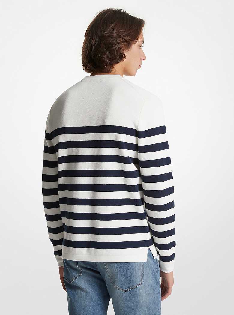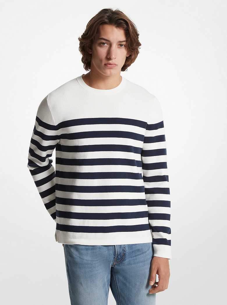 Coastal cool. This striped crewneck sweater is a modern take on the classic, crafted from soft, 100% cotton to transition you through the seasons. Pair it with your favorite washed denim for a timeless style statement that will take you from weekdays to weekends—and everything in between.